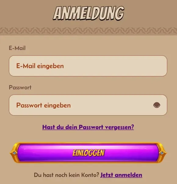 Sobald Ihr Konto aktiv ist, ist der Login denkbar einfach. Klicken Sie auf "Anmelden", geben Sie Ihre E-Mail-Adresse und Ihr Passwort ein, und schon befinden Sie sich in Ihrer persönlichen Lobby. Von hier aus haben Sie Zugriff auf alle Spiele, Ihre Transaktionshistorie und die aktuellen Bonusangebote.